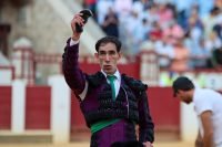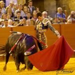 Borja Jiménez no lo tuvo nada fácil en el sexto, un toro brusco y violento por momentos que no permitió exquisiteces. Borja fue haciéndolo con oficio y a base de tragarle le robó muletazos pero sin poder construir faena con un animal deslucido. Mató de estocada.