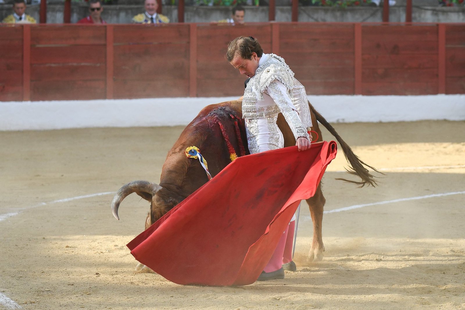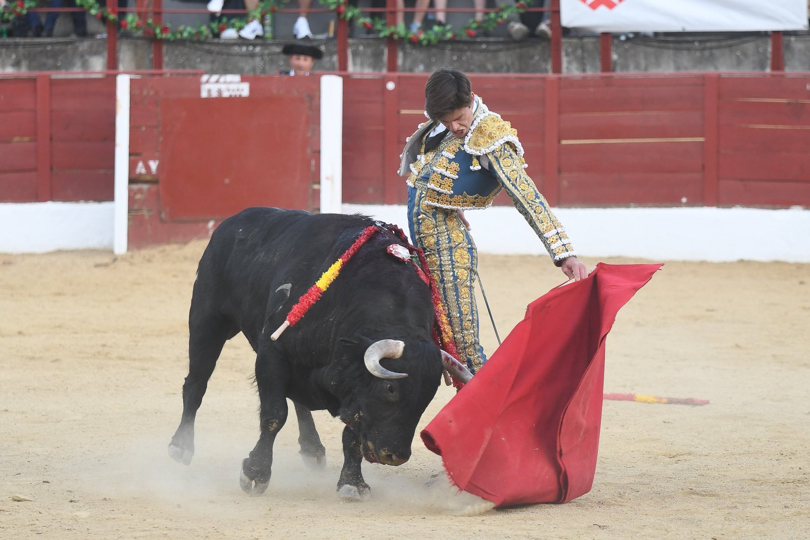 Burdiel paró al cierraplaza, de Condessa de Sobral, por verónicas. Quitó por el mismo lance y cerró con una media. Inició pegado a tablas con la mano derecha. Estuvo firme Burdiel en la segunda parte de la faena. Bien por naturales, ligando y con trazo largo y hondo. Cerró gustándose por el pitón derecho y mató de estocada entera. Oreja y ovación en el arrastre.