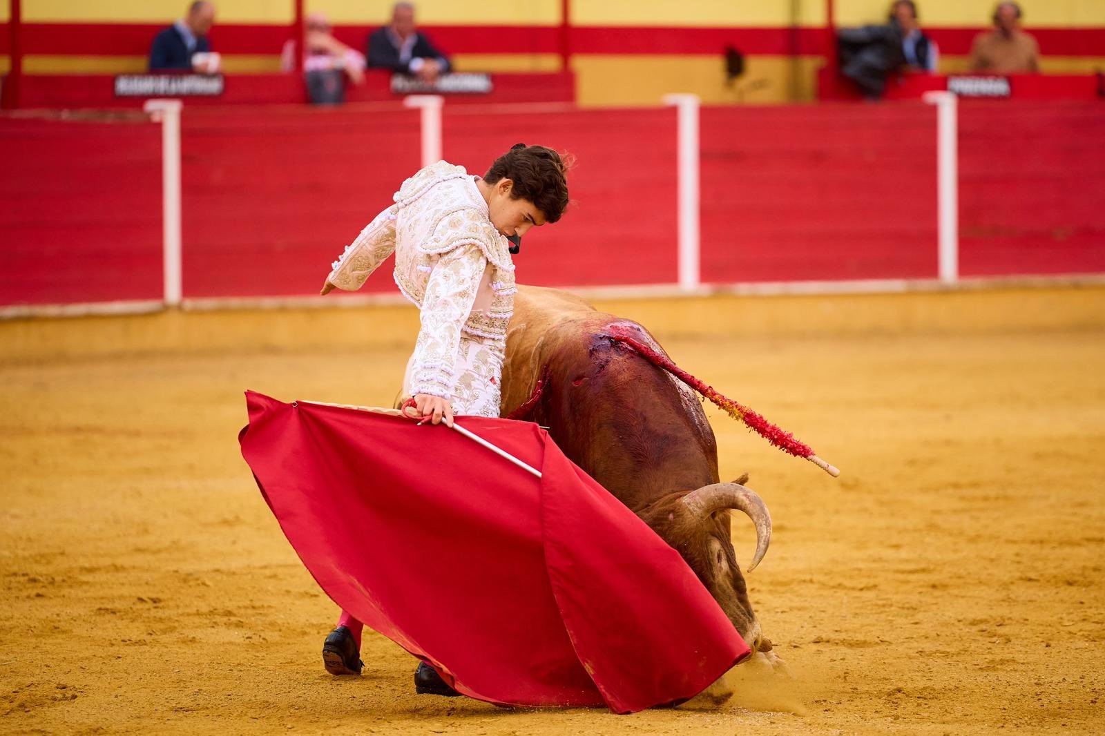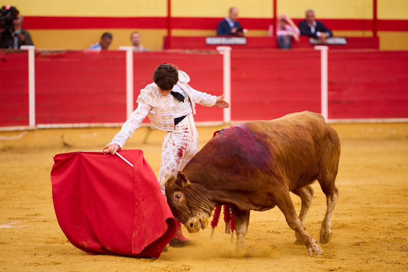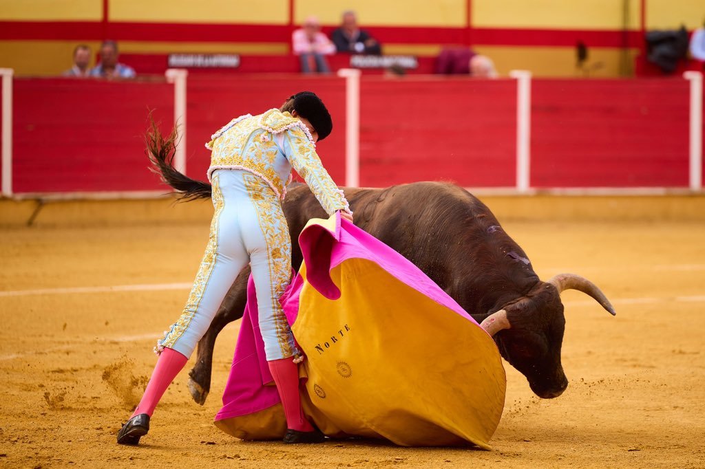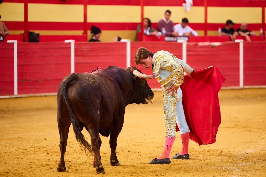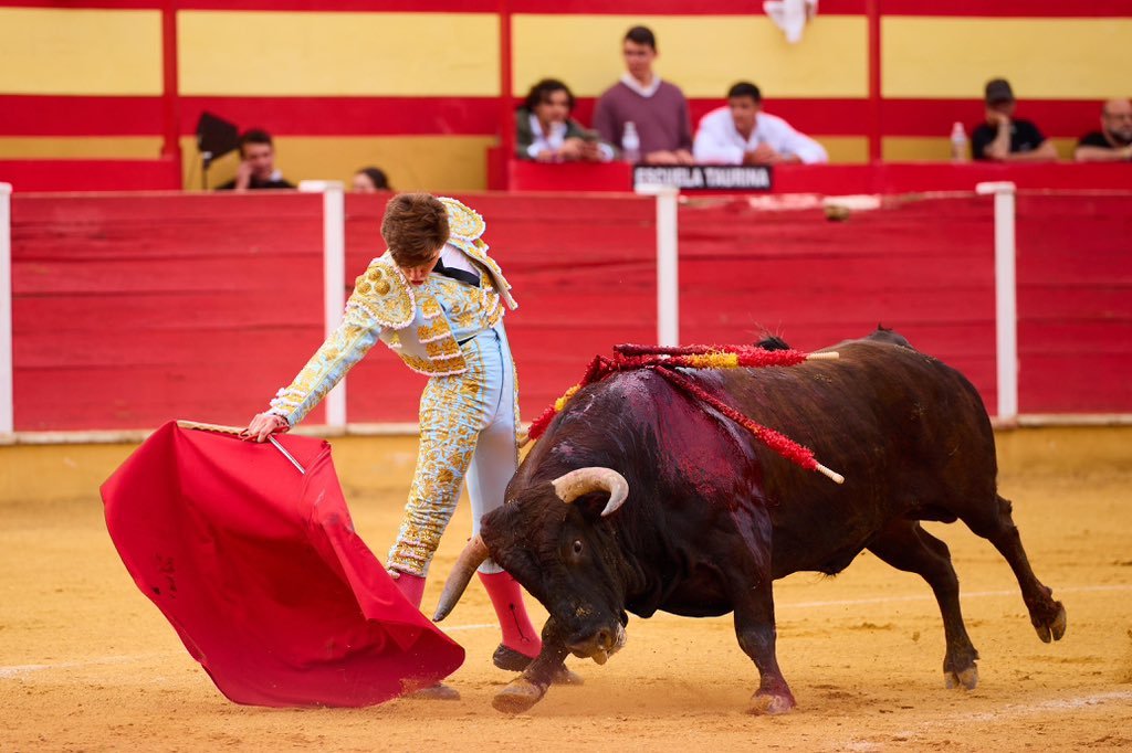 Por delantales, con las manos muy bajas y a pies juntos, recibió Julio Norte al primero de la tarde, al que posteriormente toreó a la verónica. Quitó el salamantino por chicuelinas tras un percutido puyazo en el tercio de varas. Inició la labor muleteril de rodillas, por alto, para después ligar en redondo sobre la diestra. Rápido se apagó ‘Vinatero’, por lo que Norte decidió acortar los terrenos, sometiendo y pudiéndole al de Ave María, cuyos pitones quedaron siempre muy cerca de la taleguilla del novillero. Estocada entera, desprendida, que necesitó de toque de verduguillo. Oreja para Norte, ovación para el astado.