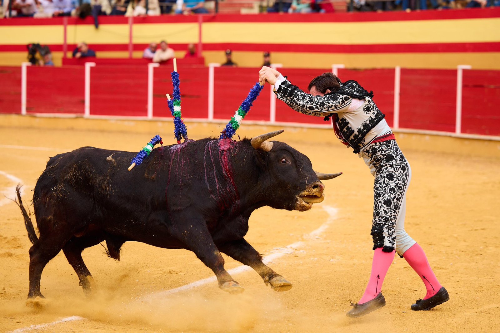 A portagayola recibió Iván Rejas a “Compañero”, antes de dejar varios afarolados de rodillas y torear con buen son a la verónica. El granadino firmó un destacado tercio de banderillas que hizo vibrar a los tendidos. Algo desgastado llegó el de Ave María a la faena de muleta, con la que dejó buenos compases Rejas por ambos pitones. Al natural, echándole los vuelos, dejó los mejores compases de la faena, llenos de profundidad. Varios circulares invertidos y luquesinas fueron la rúbrica de su labor muleteril. Hizo guardia la espada. Oreja.
