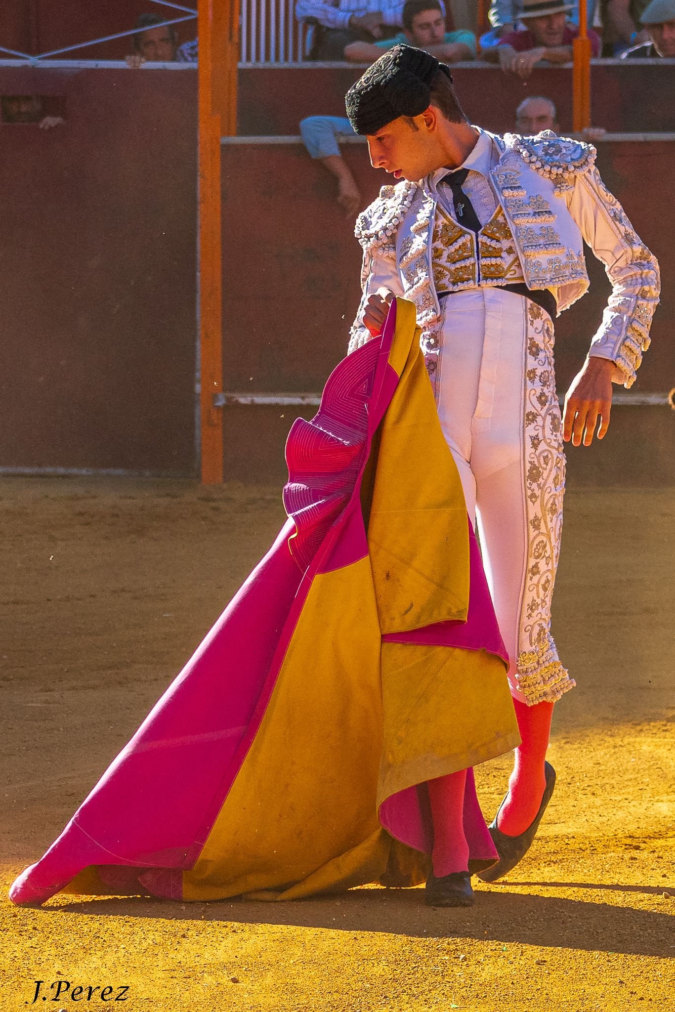 Un inicio vibrante encendió los tendidos cuando Manuel Diosleguarde salió al encuentro del serio ejemplar de Pedraza de Yeltes. El capote del salmantino voló con enjundia, dibujando unas soberbias verónicas de recibo que calaron hondo y fueron fuertemente jaleadas por la afición de Miraflores. El astado cumplió y se empleó con fijeza en el peto montado por Nicolás Martín, dando paso a un vistoso tercio de banderillas donde Jarocho brilló dejando muy buenos pares.