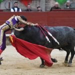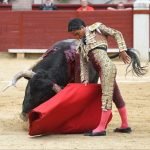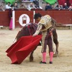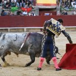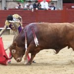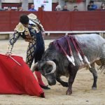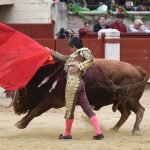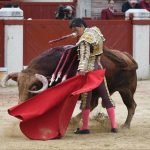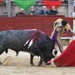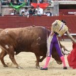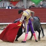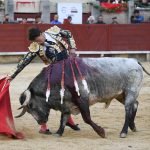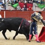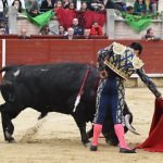 Jugaba en casa Alejandro Chicharro y el saludo al tercero de la tarde estuvo a la altura del compromiso. El diestro madrileño estiró los brazos y jugó bien la cintura para dejar un ramillete de estimables verónicas de recibo que despertaron el calor de sus paisanos. Cumplió el astado en el caballo, donde Rafael Pérez midió el castigo dejando un puyazo en buen sitio, para que luego Chicharro calentara los tendidos con un quite por ajustadas saltilleras. Comenzó su labor de muleta destilando torería, flexionando la pierna para someter al astado mediante ayudados por bajo, abrochando el inicio con un bellísimo trincherazo. Ya erguido, construyó series de derechazos que tuvieron hondura y buen trazo, pero a la obra le faltó el eco necesario. El ejemplar de Pedraza de Yeltes adolecía de falta de transmisión; su embestida sosa y deslucida impidió que la emoción prendiera y conectara del todo con los tendidos.