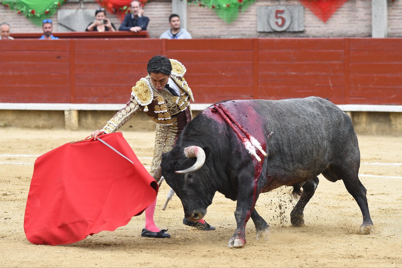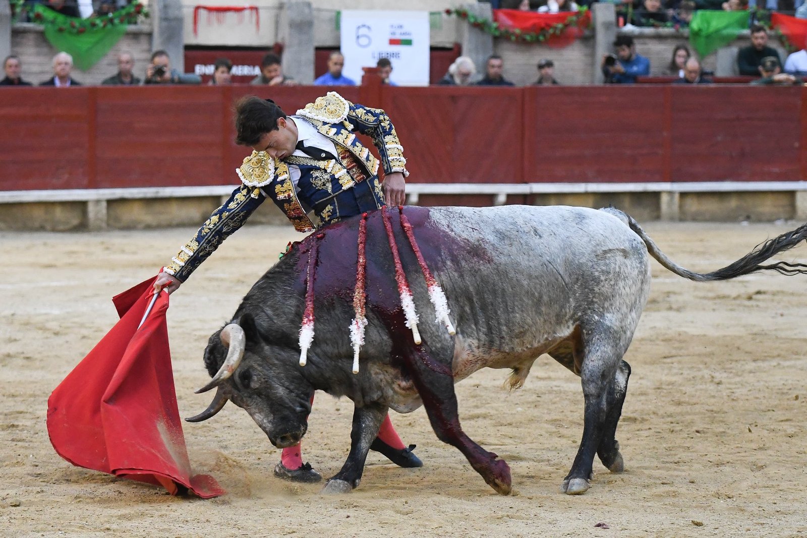 El quinto de la tarde, un astado de Flor de Jara serio y muy bien armado, se topó de bruces con la ambición desmedida de Manuel Diosleguarde. El diestro salmantino calentó el gélido ambiente recibiéndolo de hinojos en el tercio, recetando una vibrante larga cambiada. Ya en pie, se estiró con el percal para dibujar las verónicas más rotundas y de mayor belleza de toda la tarde. El tercio de varas dejó un muy buen puyazo a cargo de Alberto Sandoval, prologando un brillante tercio de rehiletes donde Elías Martín se la jugó de verdad, arriesgando una enormidad y dejando pares de gran exposición.