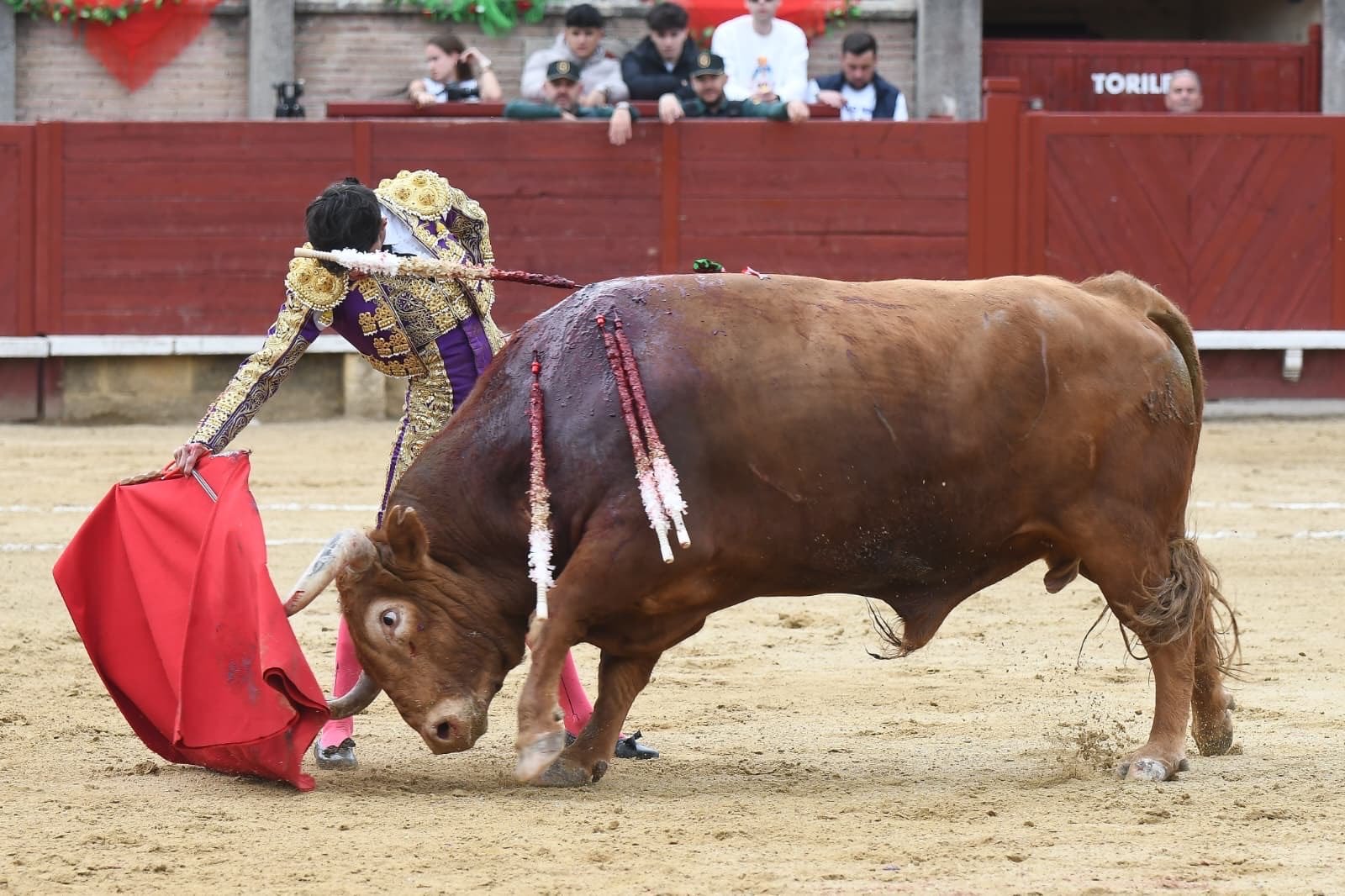 El ambiente se calentó gracias a la competencia en el quite. Juan Carlos Cubas entró en turno por ajustadas chicuelinas, encontrando la rápida e impetuosa réplica de Manuel Diosleguarde, quien avivó los tendidos alternando vibrantes tafalleras con gaoneras. El tercio de banderillas tuvo nombre propio: Jesús Robledo «Tito», quien se vio obligado a saludar montera en mano tras clavar dos pares de enorme exposición y verdad.