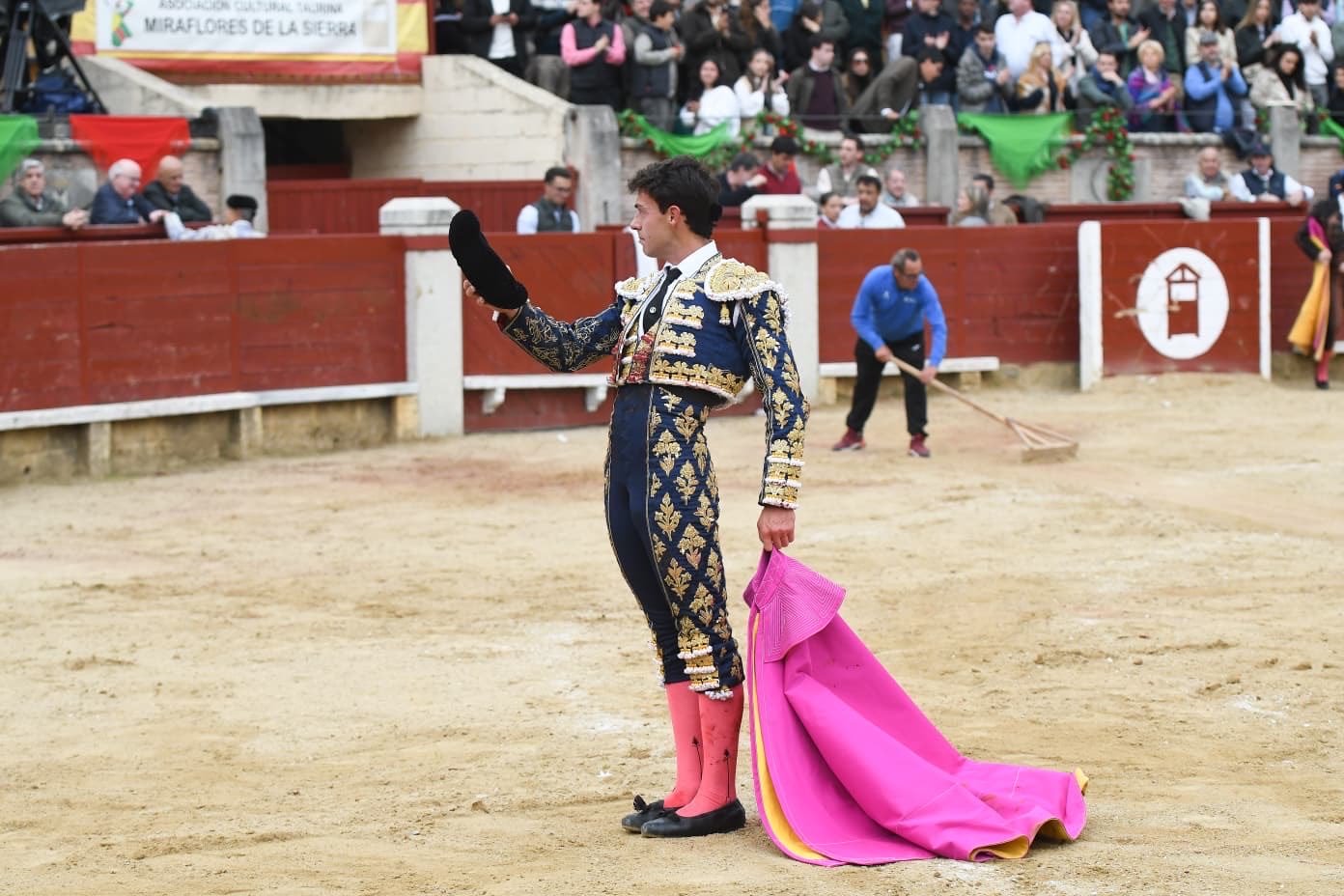 Con el aire gélido de la sierra madrileña colándose por los tendidos, el primer astado de Flor de Jara impuso su ley nada más pisar el albero. Un toro de lámina imponente y cuajada que arrancó, por su sola presencia, la primera ovación de la tarde. Juan Carlos Cubas lo recogió con mimo, meciendo los brazos para dejar un puñado de verónicas de recibo que tuvieron el don de la suavidad.