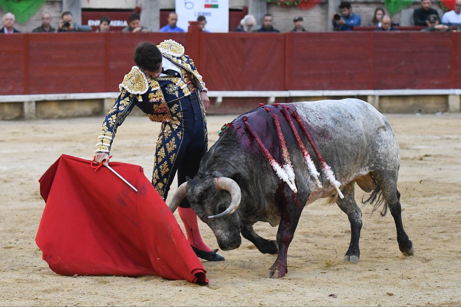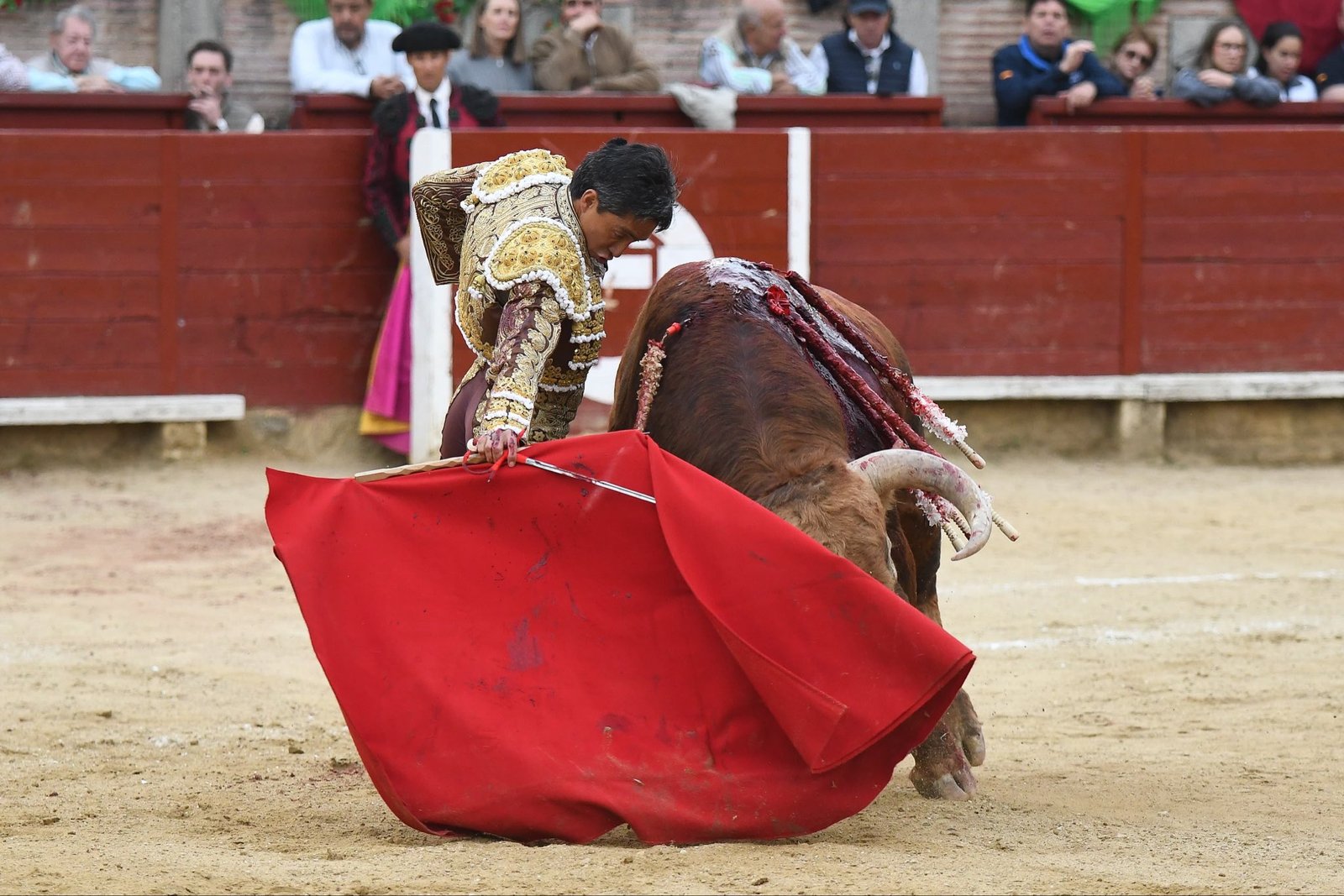 Pero el verdadero culmen de la obra estaba reservado para la suerte suprema. El salmantino se perfiló y entró a matar a cara o cruz, volcándose sobre el morrillo y tirándose encima del astado cual suicida que no mira atrás. La espada quedó ligeramente contraria, pero la entrega fue tan rotunda que el efecto resultó fulminante. La plaza, sobrecogida por la inmolación en el embroque, pidió los trofeos con fuerza, paseando finalmente una oreja de indudable peso que premia la capacidad y el valor sin fisuras del torero.